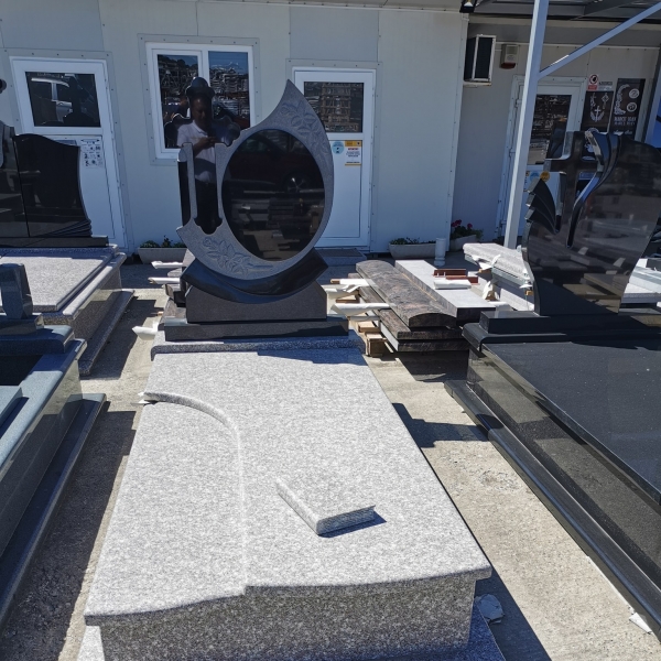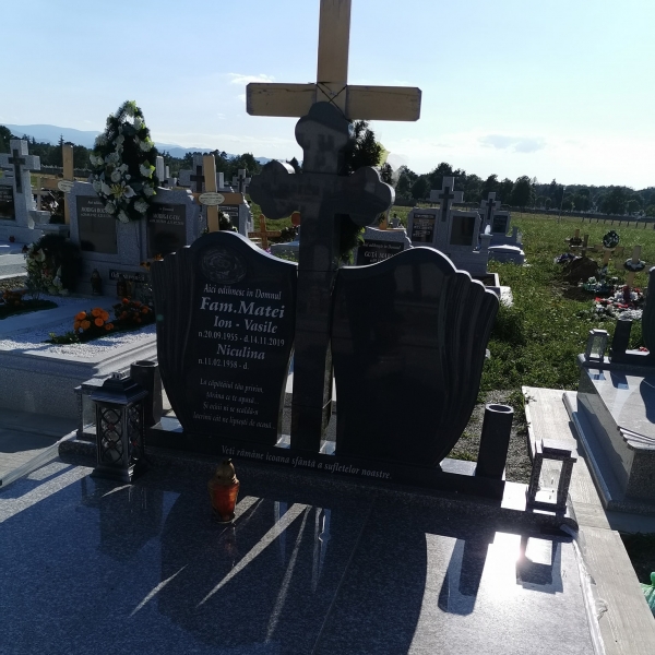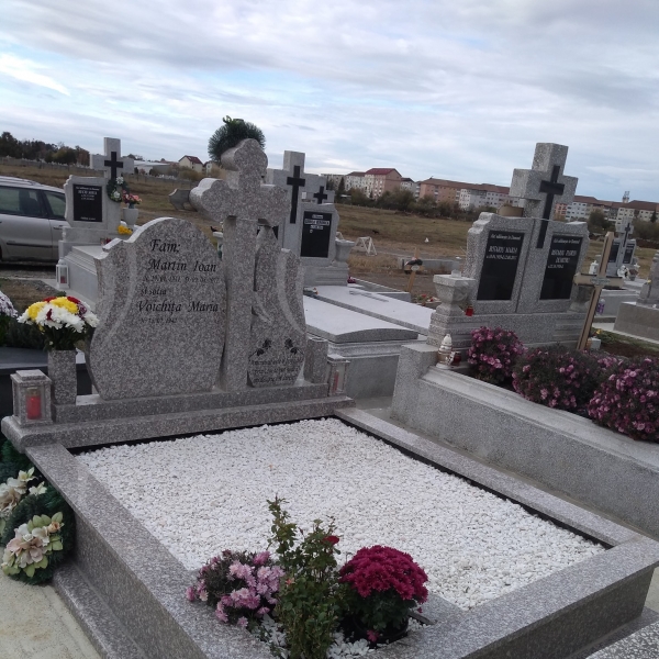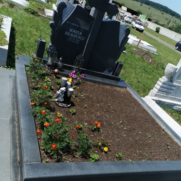 Lucrari funerare, de la monumente funerare din marmura si granit, fotoceramica funerara care se aplica pe monument, cadre morminte din granit sau marmura, cruci din granit si marmura, litere si decoratiuni de bronz care pot da o nota deosebita lucrarii finale, statuete si vaze din rasina si alabastru utile pentru decorarea locului de veci, pana la servicii de scriere a monumentului funerar si montajul tuturor accesoriilor.