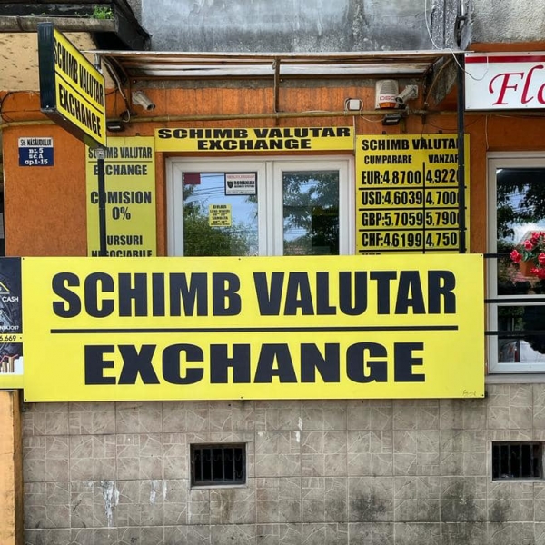 Cumparam valute, precum: euro, dolar, lira sterlina, franc elvetian.